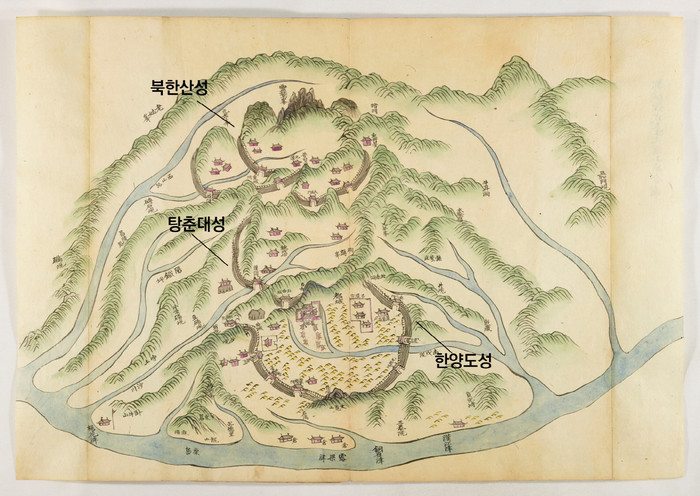 [사진설명] 도성연융북한합도(都城鍊戎北漢合圖)」속 북한산성(위), 탕춘대성(중간), 한양도성(아래)