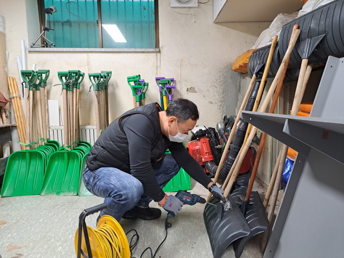 지난 6일 밤 퇴근 무렵부터 7일까지 전국에 눈 예보가 있어 제설 장비를 사전에 정비하여 제설업무에 대응하고자 송풍기, 넉가래, 삽, 빗자루 등을 정비했다. 또한 관내 보도육교와 버스 승강장, 취약지역에 비치되어 있는 제설함에 염화칼슘을 보충하여 살포할 수 있도록 하였다.