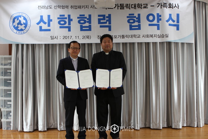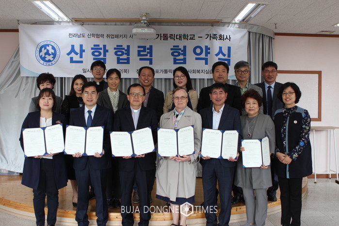 목포가톨릭대학교 휴먼서비스사업단과 목포종합사회복지관을 비롯한 32개 가족회사가 손잡고 휴먼서비스 전문가 양성에 나선다. 목포가톨릭대학교 휴먼서비스사업단은 본교 사회복지실습실에서 휴먼서비스 실무현장에서 요구하는 맞춤형 전문 인력을 양성하기 위하여 산학협력 협약(MOU)를 체결하였다.