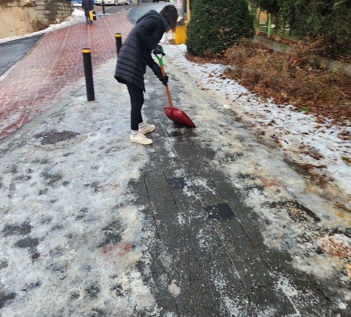 지난 6일 저녁부터 밤늦게까지 내린 눈비로 인해 주민 통행에 지장이 있을 보행로 등 민원이 잦았던 제설 사각지대에 대하여 점검하고, 주민 이동이 필수적인 대중교통 연계 구간, 학교 및 학원가 이동로에 대하여 빙판길 제빙을 집중 실시하였다.