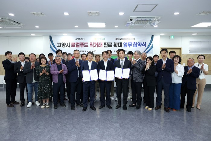 [부자동네타임즈 김인수기자] 14일 고양시청 대회의실에서일산농업협동조합, ㈜이랜드킴스클럽과 로컬푸드 직거래 판로 확대를 위한 업무 협약을 체결했다.