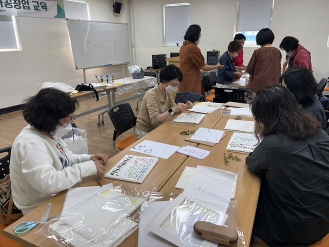 교육은 기초반으로 총 10회차로 진행된다. 첫 회는 압화의 역사 및 꽃 건조 방법을 이해하는 이론교육과 함께 압화를 활용한 여름의 필수품 부채를 만들어 보는 과정으로 구성되었다. 2회차부터 10회차까지는 직접 말린꽃을 활용한 장신구, 투명 유리잔 등 생활소품까지 직접 만들어 보는 다양한 실습교육위주로 추진할 계획이다.