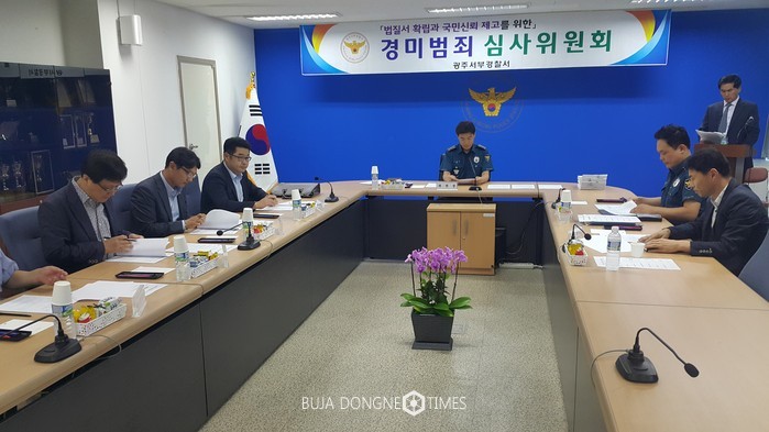 | △광주서부경찰서는 광주 서구지역에서 발생한 절도, 점유이탈물 횡령사건 중 경미범죄 대상자를 선정하여 경미범죄심사의원회를 개최하였다 |