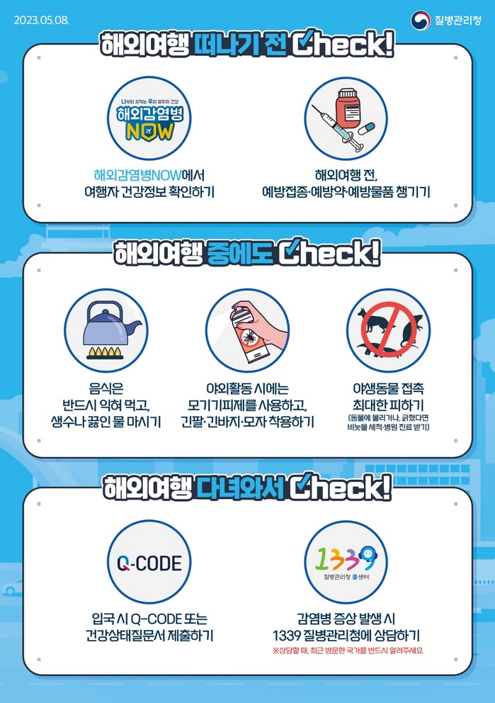 보건소 관계자는 “여행 전 질병관리청 누리집에서 감염병 발생 정보 및 예방법을 확인하시기 바란다. 여행 후 의심 증상이 있을 시 질병관리청에 신속히 신고하고, 의료기관 방문 시 해외여행력을 미리 알리시기 바란다”고 당부했다.