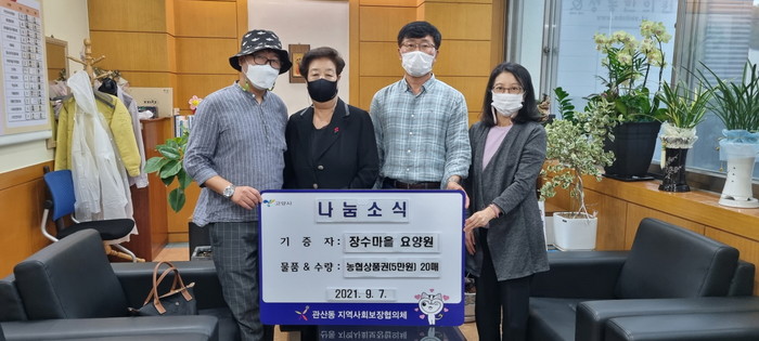 김성두 관산동 지역사회보장협의체 공동위원장은 “장수마을 요양원에서 보내 준 지역사회에 대한 관심과 이웃사랑에 감사드린다. 꼭 필요한 이웃에게 도움이 될 수 있도록 세심하게 전달하겠다”고 전했다.