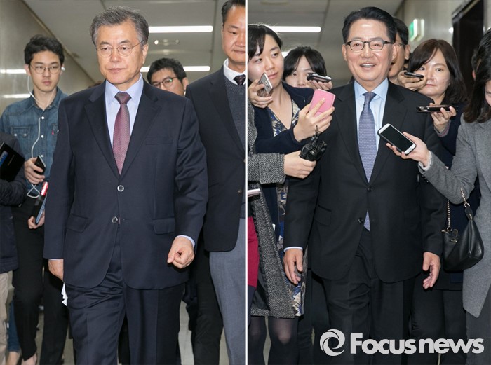 정오가 될 무렵, 문 대표가 당대표회의실로 발걸음을 떼자 약 10분 뒤 박 의원도 당대표회의실로 이동했다.