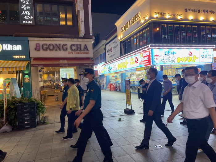 이날 점검에는 김남현 경기북부경찰청장, 고양경찰서장과 생활질서계 일선 경찰관 등과 명재성 덕양구청장을 비롯한 고양시청 식품안전과, 덕양구청 산업위생과 담당자들이 참여한 가운데, 감염병 중점관리대상 시설인 유흥ㆍ단란주점, 보드게임장의 집합금지 이행 실태와 노래연습장과 카페 등의 방역준수 사항을 확인하고 자영업자들의 경제적 어려움 등에 대한 의견 청취의 시간을 가졌다.