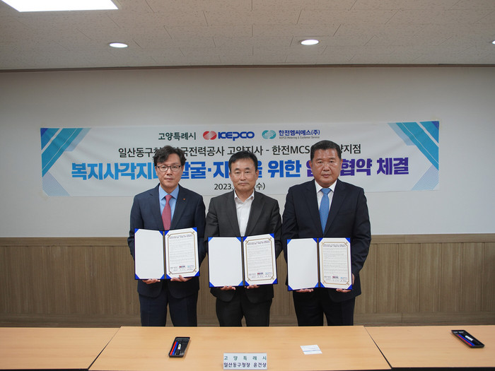 이날 협약식은 윤건상 일산동구청장과 김진곤 한전 고양지사, 김현호 한전MCS 고양지점장 등이 참석한 가운데 열렸으며, 복지사각지대의 사회적 약자에 대한 발굴 체계 구축을 위해 3개 기관이 긴밀히 협력하고자 추진됐다.