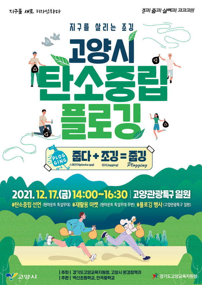 [부자동네타임즈 김인수기자] 고양시가 고양교육지원청과 함께 킨텍스, 호수공원 일대에서 지구를 살리는 조깅인 ‘탄소중립선언 플로깅’을 오는 17일 오후 2시에 개최한다.