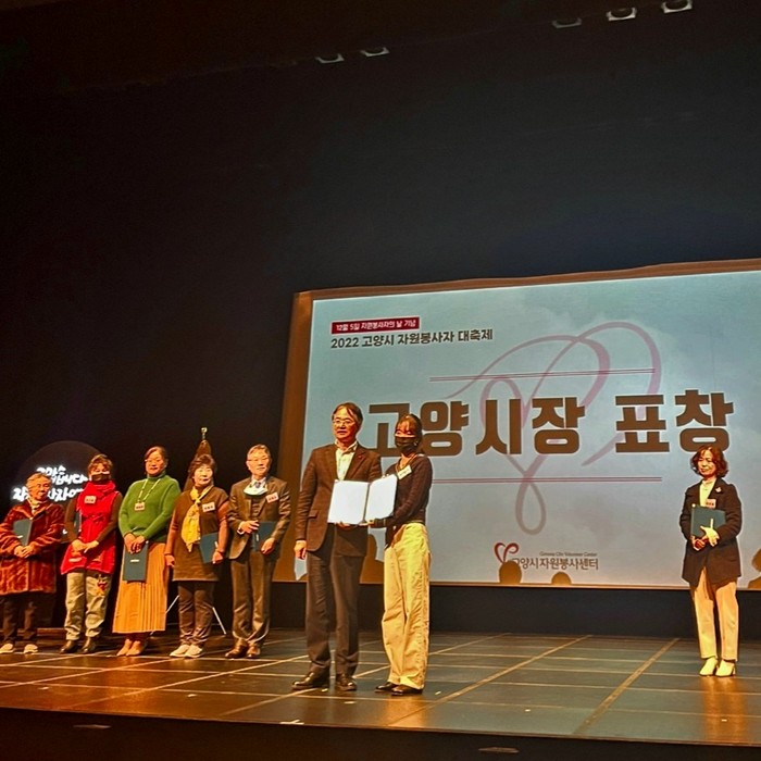 [부자동네타임즈 김인수기자] 재단법인 고양시청소년재단(대표이사 박윤희) 고양시청소년상담복지센터(센터장 황상하) 소속 청소년 노동인권 서포터즈-‘유스데스크’는 12월 13일, 2022 고양시 자원봉사자 대축제에서 고양시장상 표창을 받았다.