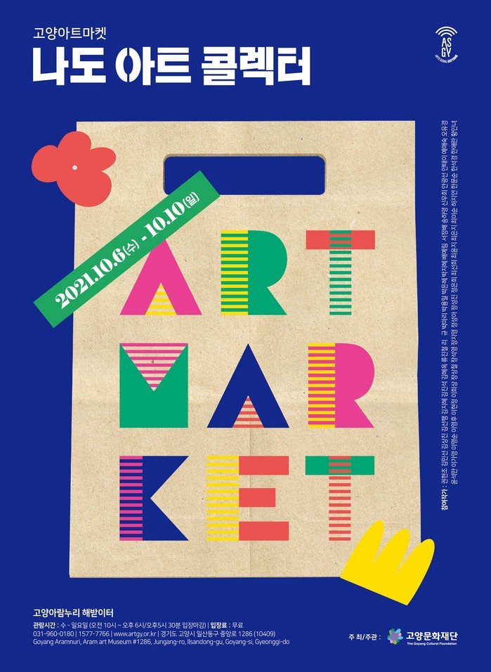[부자동네타임즈 김인수기자] 고양문화재단(대표이사 정재왈)은 고양시 작가들의 작품을 소개하고 판매를 중개하는 고양아트마켓<나도 아트 콜렉터>展을 10월 6일(수)부터 10일(일)까지 고양아람누리 해받이터에서 개최한다. 이와 같은 아트마켓은 고양문화재단 창립 후 처음 시도하는 일이다.