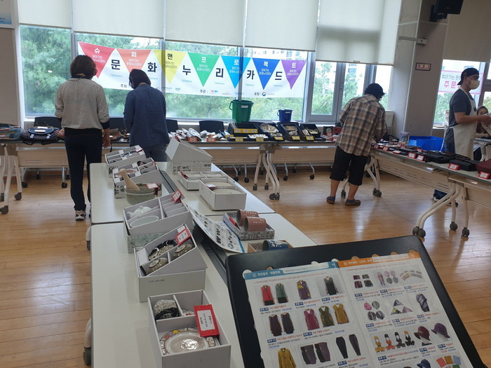 문화누리장터는 문화누리카드 이용 정보가 부족한 지역 어르신들 대상으로 장인, 무형문화재, 공예작가들이 제작하는 수공예문화상품을 구매 하도록 상품을 전시하는 자리로 현장에서 견본을 보고 문화누리카드로 구매하면 무료로 집으로 배송된다.
