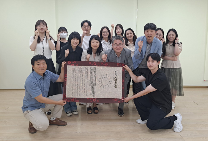 이날 행사는 동 행정복지센터 직원들이 다함께 모여 사발을 엎어서 그린 원을 중심으로 각자의 이름을 둘러가며 적고, 반부패 청렴문화 조성을 위해 노력하겠다고 맹세하는 자리로 마련됐다.