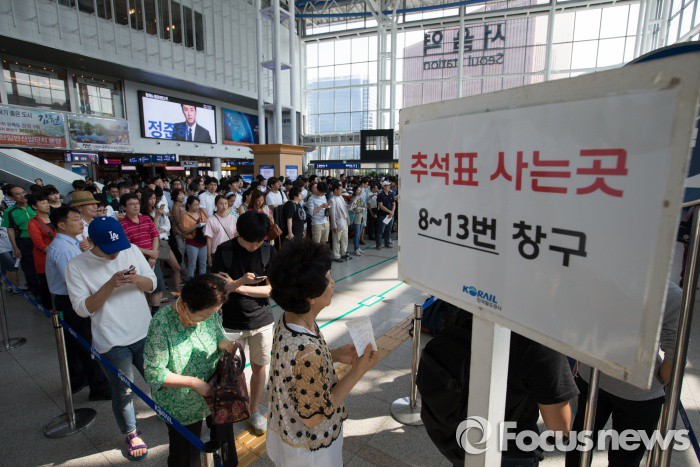 | △ 지난 9월 1일 오전 서울 용산구 청파로 서울역에서 추석연휴 열차표를 예매하려는 시민들이 줄을 서고 있다.<사진제공=포커스뉴스> |