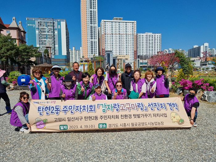 [부자동네타임즈 김인수기자] 고양특례시 탄현2동 주민자치회(회장 박병일)는 지난 19일 주민자치회 환경복지분과의‘감자랑고구마랑’텃밭 가꾸기 자치사업의 성공적인 추진기반을 다지고자 시흥시 월곶동 시민행복텃밭을 방문했다.