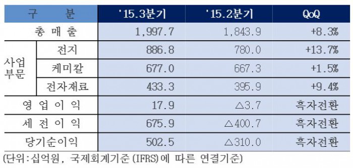 4분기에는 전지사업 중심으로 매출 성장이 예상된다. 자동차용 전지는 울산사업장 신규 라인과 중국 시안 공장 라인이 본격 가동 되면서 매출이 큰 폭으로 성장할 전망이며 ESS(에너지저장장치) 사업은 활발한 수주활동을 바탕으로 매출이 오를 전망이다. 케미칼 사업 역시 견조한 실적을 이어 갈 것으로 보인다.