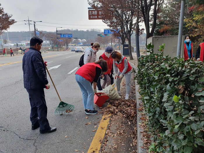 식사동 통장협의회 20여명과 동 행정복지센터 직원들이 함께 참여하여 주요 차도 가장자리에 쌓인 낙엽을 제거하고 배수로 빗물받이 청소 등 비 피해를 방지하기 위해 청소를 실시했다.