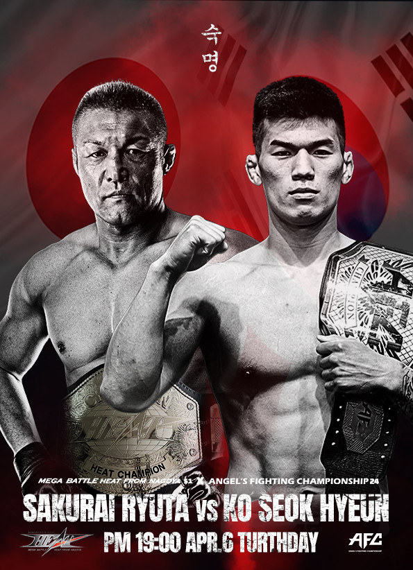 [부자동네타임즈 김인수기자] AFC(엔젤스파이팅) 미들급 챔피언 고석현(29, 팀스턴건·하바스MMA) 일본 단체 히트(HEAT)의 대표 선수 사쿠라이 류타(51)와 의 숙명의 한일전 미들급 통합타이틀전 출격한다.