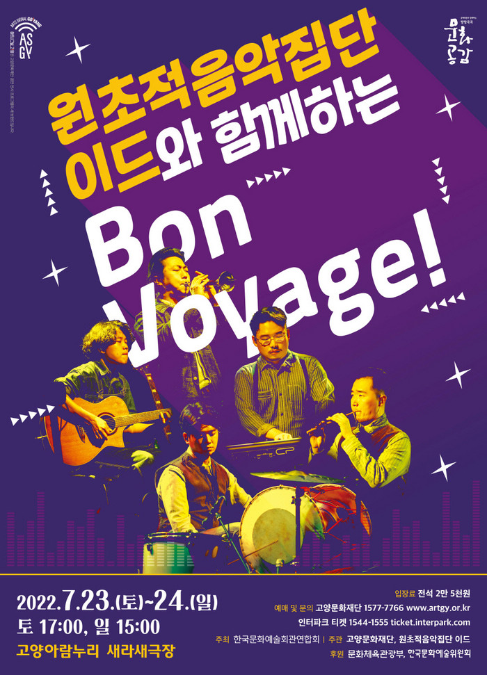 원초적음악집단 이드와 함께하는 Bon Voyage! 공연은 2022년 문예회관과 함께하는 방방곡곡 문화공감 민간예술단체 우수공연 프로그램 선정작으로 한국문화예술회관연합회가 주최하고 고양문화재단과 원초적음악집단 이드가 주관, 문화체육관광부와 한국문화예술위원회가 후원하여 사업비 일부를 문예진흥기금으로 지원받아 진행한다.