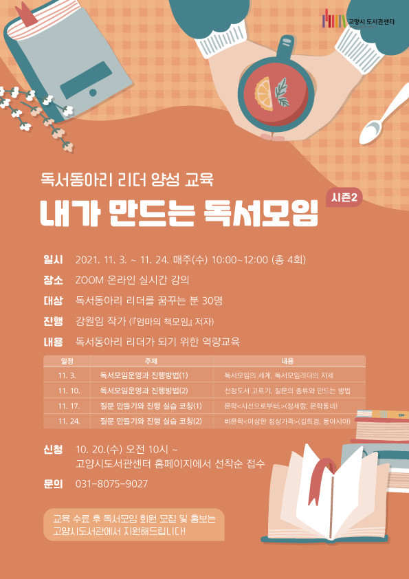 [부자동네타임즈 김인수기자] 고양시 도서관이 11월 3일(수)부터 내가 만드는 독서모임 시즌2를 온라인으로 진행한다.