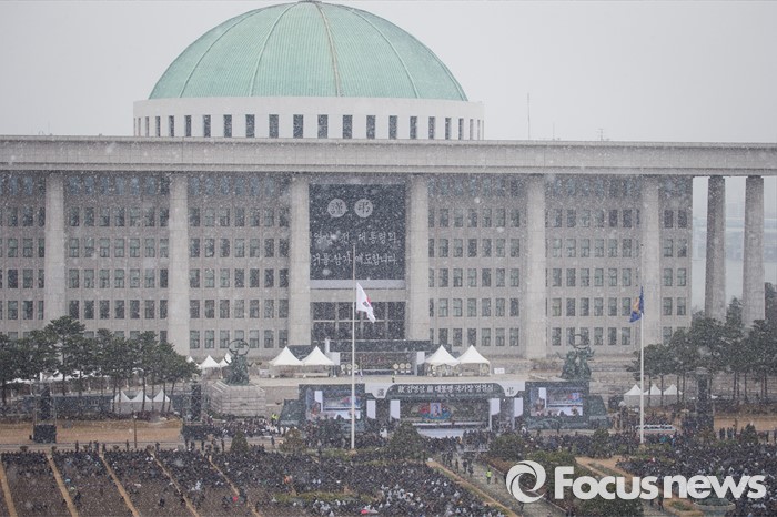 △ 26일 서울 여의도 국회에서 고 김영삼 전 대통령 국가장 영결식이 열리고 있다. 사진공동취재단 photo@focus.kr