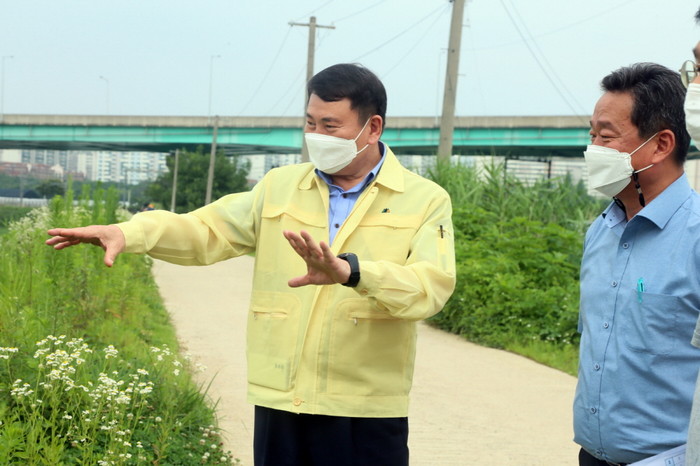 취임 첫날 공식 일정으로 장마철 수해 대비 관내 대장 펌프장 및 대내로 펌프장 등을 현장 방문하며 취임식을 갈음한 명 구청장은 “이번 주부터 본격적으로 장마가 시작되는 만큼 비 피해가 최소화되도록 철저하게 대비해 줄 것”을 당부하며 배수시설과 장마 대비 상황을 점검하고 관계자를 격려했다.