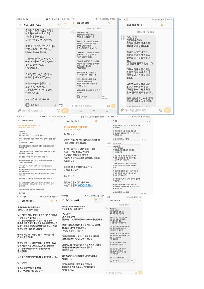 권리당원명부 불법유출 및 문자발송 사건으로 수사를 받고 있는 이용섭 후보측이 또다시 그 명부를 불법 활용해 무차별적으로 지지문자를 발송하며 부정선거를 자행하고 있다.
