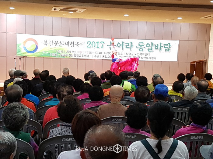 담양군노인복지타운(원장 이동오)은 민주평통담양군협의회와 전남통일교육센터와 연계하여 24일 노인복지타운 대강당에서 지역어르신 200여 명이 참석한 가운데 북한문화체험행사를 개최했다.