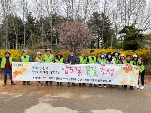 [부자동네타임즈 김인수기자] 고양특례시 장항1동 주민자치회(회장 유재신)는 지난 4월 4일 압도길 일원(장항동 514-16 등)에서 자치사업의 일환으로 산책길 공터를 정비하고 초화를 식재했다.