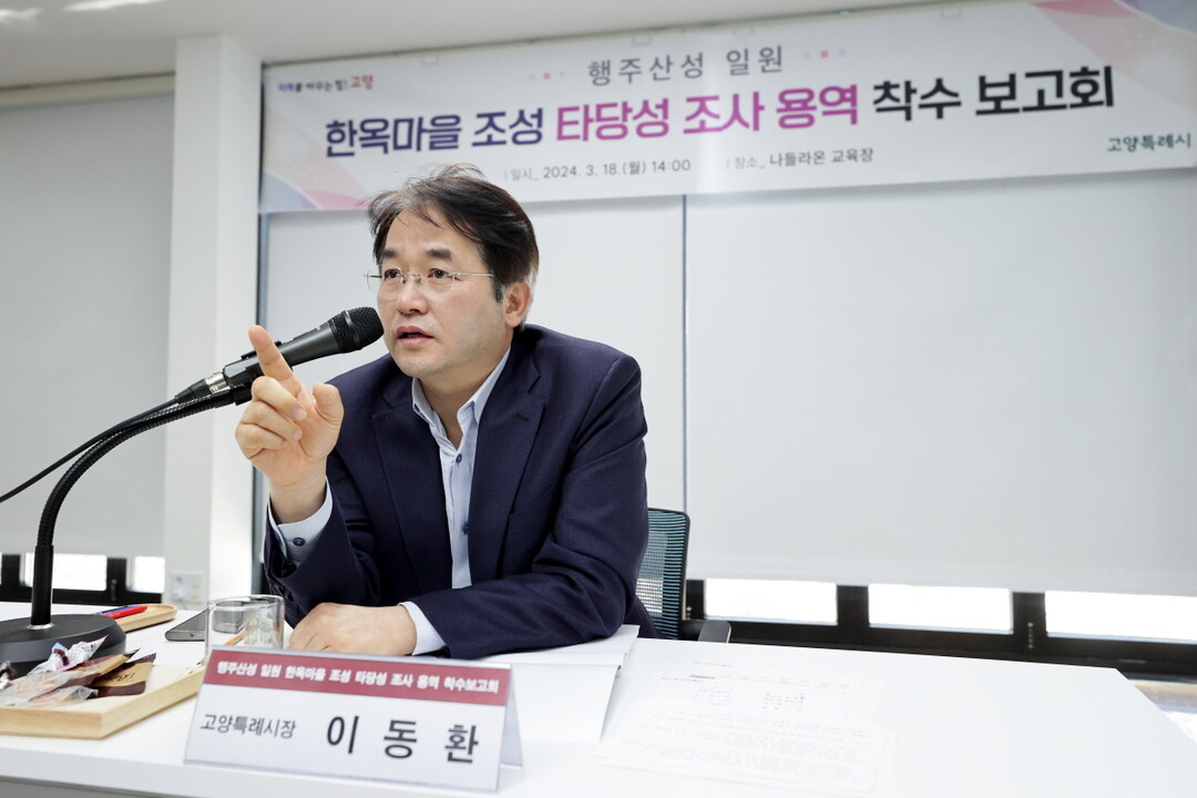 이동환 고양특례시장은 “행주산성 일원 한옥마을 조성은 단순히 관광명소를 만드는 것을 넘어서 우리 지역의 역사와 문화를 재조명하는 작업”이라며,“방문객들에게 우리 지역의 역사와 문화를 체험할 수 있는 기회를 제공할 수 있도록 우리 모두가 자랑스러워 할 수 있는 새로운 문화의 중심지로 만들어 나갈 것”이라고 밝혔다.