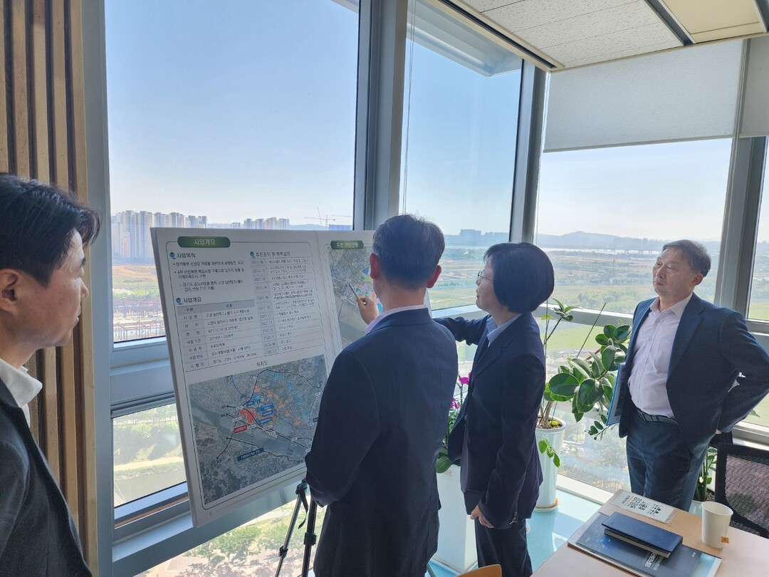 [사진설명] CJ라이브시티 조성 현장에서 사업 보고를 받고 있는 이정화 제2부시장.