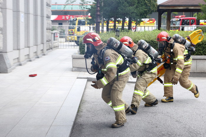 [부자동네타임즈 김인수기자] 고양특례시(시장 이동환)가 24일 9사단, 일산소방서, 일산동부경찰서, 한국예탁결제원 등 관내 유관기관과 함께 국가중요시설 테러대응 실제훈련을 한국예탁결제원 일산센터에서 실시했다.
