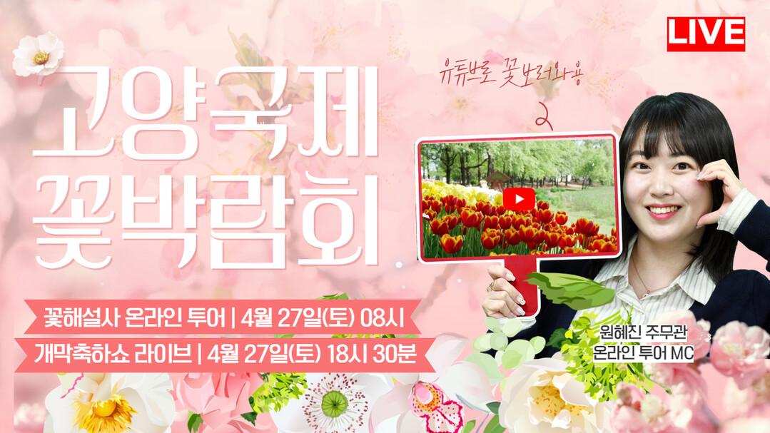 문영기 언론홍보담당관은 “현장감 있는 생중계를 통해 많은 시민들이 고양국제꽃박람회의 다양한 정보를 접할 수 있을 것”이라며 “유튜브 외에도 여러 홍보매체를 통해 고양국제꽃박람회의 매력을 알리겠다”고 밝혔다.