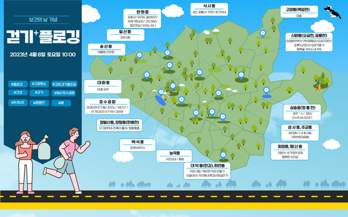 행사 당일 참가자들은 호수공원, 정발산, 창릉천 등 원하는 장소에서 전문 강사와 온라인으로 걷기 운동과 쓰레기 줍기를 병행했다.
