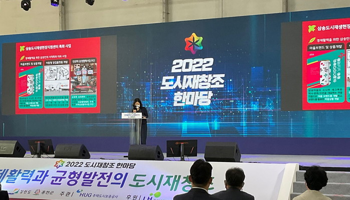 [사진설명] 2022년 도시재창조 한마당에서 고양시 관계자가 사례 발표를 하고 있다.