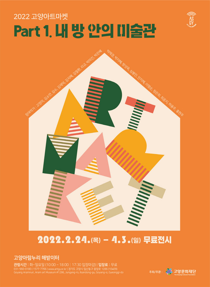 이번 2022 고양아트마켓 - Part 1. 내 방 안의 미술관 展 전시에 참여한 작가는 고영미, 김소연, 김수, 김재덕, 김지혜, 김철환, 리규, 박미진, 박은혜, 박제경, 박지혜, 방성욱, 심봉민, 안지혜, 이명순, 정은희, 최윤지, 하용주, 홍현주로 모두 현재 국내 각지에서 활발히 활동하고 있다.