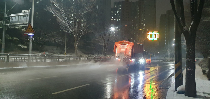 또한 689대의 제설장비, 제설전담 인력 292명 및 용역 188명을 강설 상황 발생 3시간 전 사전 배치해 비상 상황에 대비하고, 총 17,013톤의 제설제를 사전 확보하는 등 제설작업에 총력을 기울였다.