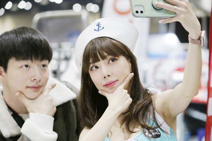 [사진설명] 심채원 레이싱모델이 찾아오신 시민들에게 바쁜 일정에도 기념촬영 해주고 있다.