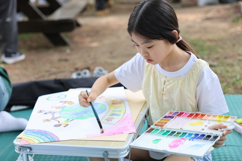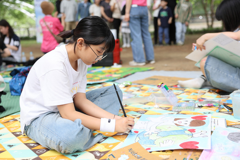 ▲ 국립서울현충원에서 열린 제7회 평화사랑 그림그리기 국제대회 예선 참가자가 그림을 그리고 있다. (사진제공 = ㈔세계여성평화그룹(IWPG) 글로벌 8국)
