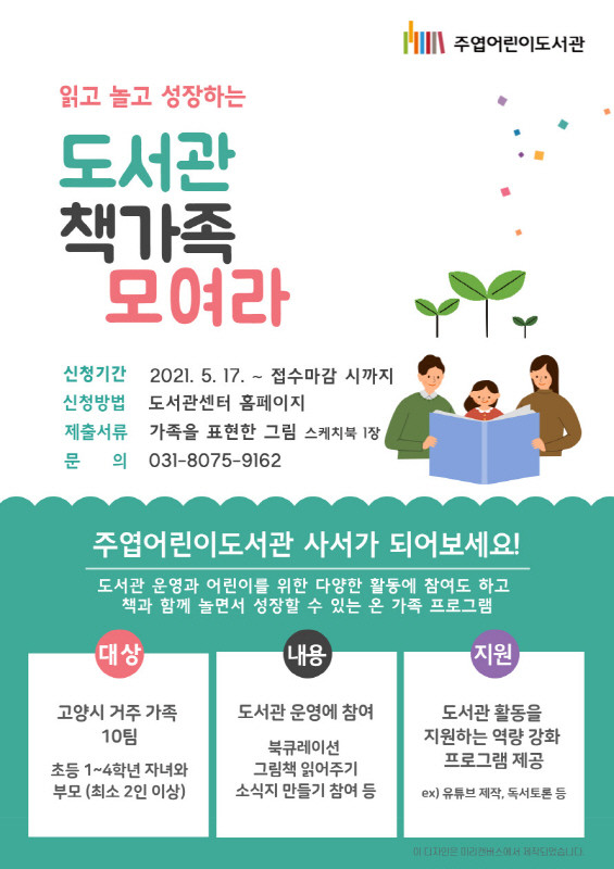 [부자동네타임즈 김인수기자] 고양시 주엽어린이도서관은 오는 6월부터 부모와 자녀가 함께 참여하는 프로그램 ‘도서관 책가족’을 운영한다.