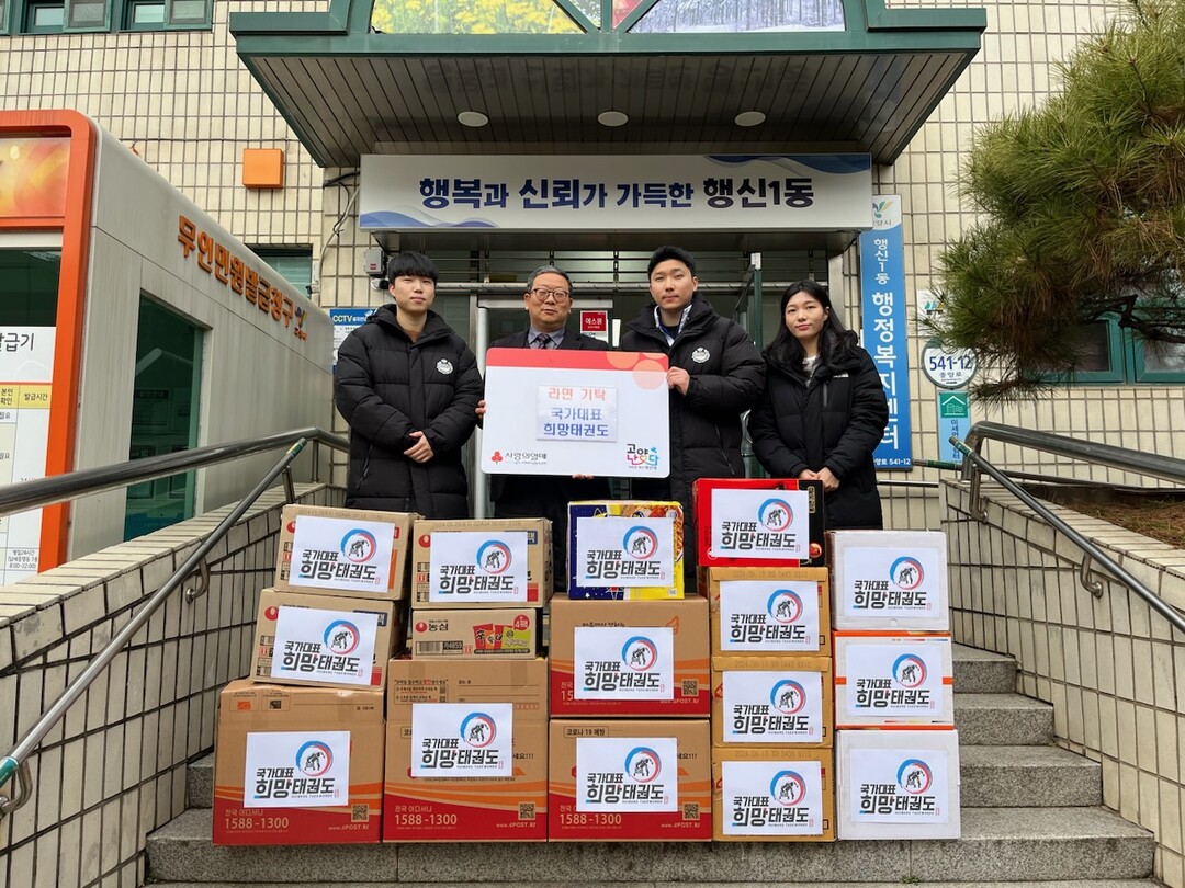 원생들이 가정에서 직접 준비한 라면을 모아 도장에서 ‘사랑의 라면트리’를 만들었고, 이를 행신1동 행정복지센터에 기부했다. 기부된 라면은 복지사각지대 대상자들에게 전달될 예정이다.