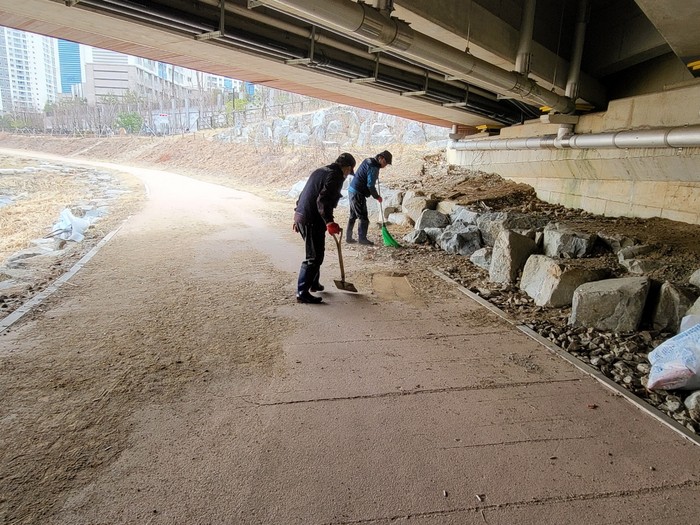 구는 관내 하천구역(지방하천 14개소 77km, 소하천 41개소 62km)에 있는 산책로, 자전거도로, 화장실, 야외운동기구, 휴게시설 등을 대상으로 안전 및 청결상태를 점검하고 시설물 보수 및 세척·청소작업을 실시했다.