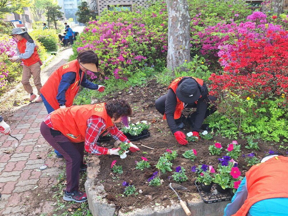 이날 행사는 주민자치회, 통장협의회 등 직능단체 회원 50여명이 참여하였으며, 마을 화단 30개소와 동행정복지센터 및 성라초등학교 주변 등 주민들이 자주 왕래하는 마을 곳곳에 페튜니아 1,600본을 식재하는 행사로 진행되었다.