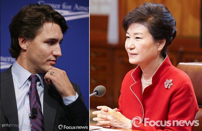 △ 박근혜 대통령(오른쪽)와 저스틴 트뤼도 캐나다 총리. <사진제공=포커스뉴스>