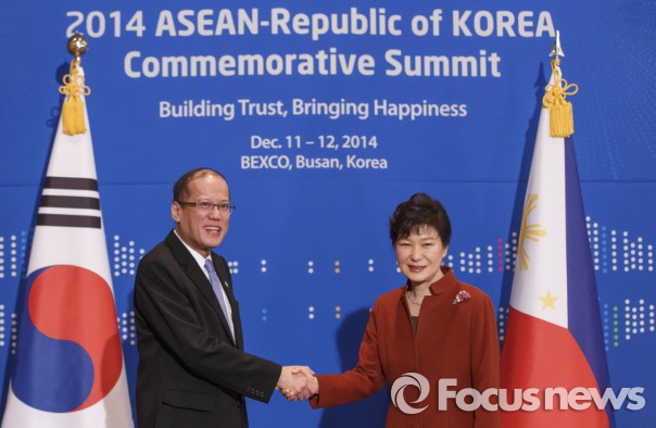 △ 박근혜 대통령은 18일 베니그노 아키노 3세 필리핀 대통령과 정상회담을 가졌다. 사진은 2014년 말 부산 해운대구 한 호텔에서 열린 한-필리핀 정상회담 기념촬영 장면이다. 2014.12.11. <사진출처=청와대>