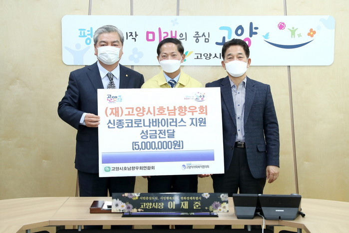이날 고양시호남향우회는 신종 코로나바이러스 추가 감염을 예방하기 위해 성금 500만원을 기탁했다. 성금은 고양시사회복지협의회를 통해 감염에 취약한 가정을 위한 손소독제로 지원 될 예정이다.