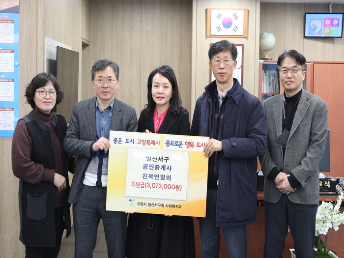 [부자동네타임즈 김인수기자] 고양특례시 일산서구는 지난 22일 일산서구 공인중개사 친목연합회(회장 배재민)로부터 후원금 3,073,000원을 전달받았다고 밝혔다.
