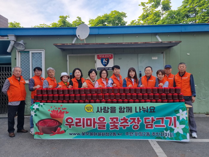 [부자동네타임즈 김인수기자] 고양특례시 화정2동 주민자치회는 지난 16일 주민자치 활성화 사업인 ‘우리 마을 꽃추장 담그기 행사’를 통해 직접 담근 고추장을 관내 저소득층 170가구에 전달했다.