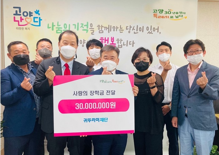 [부자동네타임즈 김인수기자] 고양특례시는(시장 이동환)는 지난 26일 귀뚜라미그룹에서 저소득층 학생의 학업 장려를 위해 장학금 3천만원을 지원해 전달식을 개최했다고 밝혔다.
