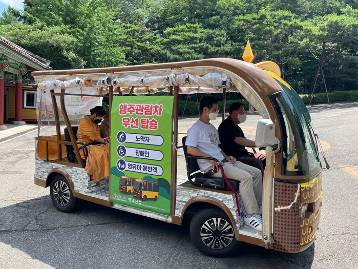 [부자동네타임즈 김인수기자] 고양시(시장 이동환)가 행주산성 대첩문에서 충의정 정상까지 이르는 약 800m 구간에 행주관람차 운행을 시작했다고 밝혔다. 행주관람차는 행주산성 내를 순환하는 2대(6인승, 9인승)의 전기차로 휠체어 이용객도 탑승할 수 있다.